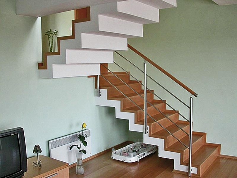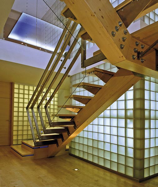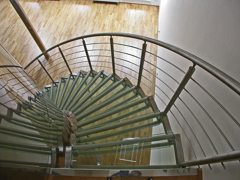 VISUTÉ – schodišťové stupně mohou být žulové či železobetonové a vetknuté do boční zdi. Jednotlivé stupně jsou opřeny navzájem do sebe a mezi sebou přenášejí zatížení do nosníků anebo podest. ZAVĚŠENÉ – z jedné strany jsou schody uloženy na zdi, z druhé strany je každý stupeň zavěšený na prvcích ukotvených do stropní či jiné konstrukce. Tato opticky lehce působící konstrukce se velmi často používá v rodinných domech. PÁTEŘOVÉ – tvoří hlavní nosný prvek – nosník (ocel, dřevo, beton) na tento prvek jsou upevněny jednotlivé stupně. OSTATNÍ TYPY – existuje i celá řada jiných schodišťových konstrukcí jako například monolitické, prefabrikované, panelové či různé stavebnice schodišť kombinované z jednotlivých dílů. |