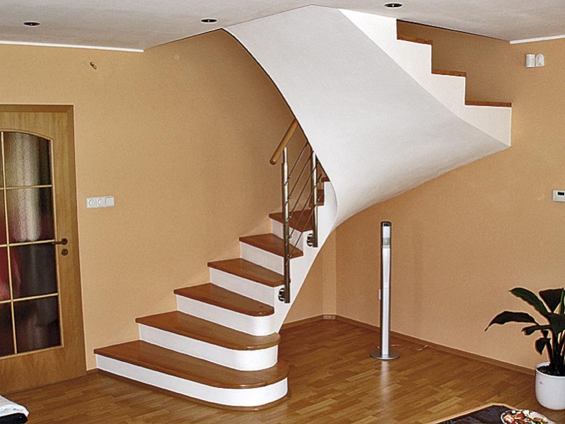 Konstrukce schodištěVŘETENOVÉ – točité schodiště: nosný prvek je umístěn v ose schodiště, může být dřevěný, kamenný nebo třeba ocelový. Stupně mohou být na středovém nosníku, případně vetknuty do zdi. Tento typ schodiště obohatí každý interiér o zajímavé křivky a je přínosným vzhledovým prvkem. SCHODNICOVÉ – stupně jsou montovány mezi schodnice – ty mohou být z kovu, dřeva, železobetonu. |