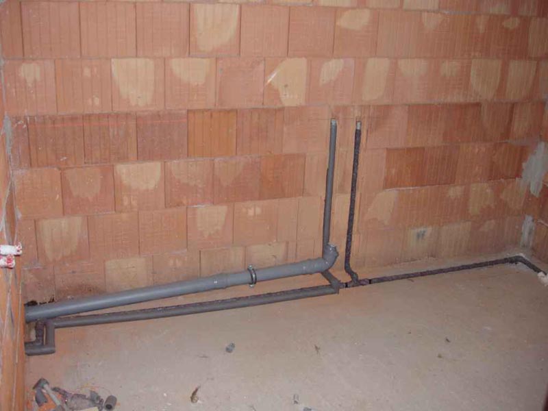 Příště bych hydroizolaci řešil jinakKdyž už byla hotová střecha, přišli instalatéři na montáž rozvodů vody a kanalizace. Snažil jsem se rozvody vést co nejvíce podlahou, aby se nemuselo tolik sekat do obvodových zdí, což výrobce cihel nepřipouští. Nakonec se tomu stejně úplně vyhnout nedalo, hlavně u kanalizace a některé zářezy jsou pořádně hluboké. Snad to nebude mít vliv na statiku. |