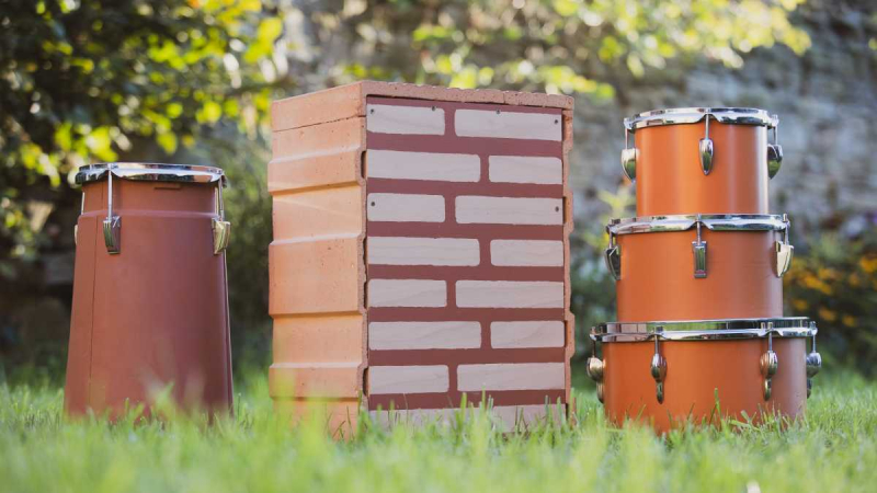 Pro hudební účely jsme doplnili ke keramofonu i několik dalších bicích nástrojů, které využíváme v rámci Keramorchestru, hudební skupiny zapsané i do České knihy rekordů. K rytmickému doprovodu jsem nejprve vytvořil univerzální nástroj ve stylu španělského cajonu. Jako základ posloužila cihla Porotherm 50 profi, doplněná rezonančními deskami a dalšími hudebními nezbytnostmi. Vyrobit klasický buben byla opravdu výzva. Nakonec mně padla do oko několik hřebenáčů. Vhodným řezem z nich lze vytvořit výseče, které po spojení tří kusů dají dohromady útvar velmi blízký komolému kuželu. Rozměr dokonce odpovídá standardizovaným rozměrům z bicích souprav.