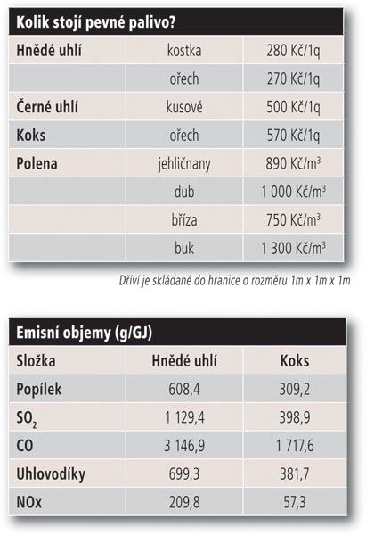 ■ krby (horkovzdušný systém) jsou za 50 000 až 90 000 korun V tabulce níže můžete zjistit, za kolik korun se dá koupit metrák uhlí a palivové dřevo, naštípané na polena. U dřeva odpovídá cena prostorovému metru. Ekonomika a ekologie jsou spojené nádoby. Právě v oblasti tepelného hospodářství se kvapem blíží doba, kdy bude třeba do výdajů na topení promítnout náklady, spojené s účinnou filtrací spalin. Pro orientaci jsme proto srovnali emisní objemy ze spalování častěji užívaných pevných paliv. Hodnoty v tabulce Emisní objemy jsou uvedeny v gramech na GJ. Naše doporučení■ Kotel pracuje hospodárně, když po celé topné období využívá konstrukční výkon. Je zbytečné kupovat kotel, který má větší výkon, než je zapotřebí k vytápění obytné plochy. Platí zásada: čím víc je kotel předimenzován, tím déle pracuje s nižší účinností. ■ Z hlediska úspor je důležité topit palivem, pro které je kotel určen. Současně je třeba dbát, aby palivo mělo strukturu a vlhkost, předepsanou výrobcem kotle. Zvláště pokud přikládáme vlhké dřevo nebo v kotli na černé uhlí spalujeme méně kvalitní hnědé uhlí. Kotel pak nevyužije vloženou energii, a navíc při nedokonalém spalovaní dá vzniknout kondenzátům, které snižují účinnost i životnost kotle. |