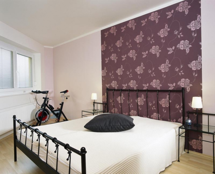 Lichoběžník, mnohoúhelník…Stejně jako v obývací části chtěli v ložnici majitelé jen to nejnutnější. Rozhodnutí navíc podpořil i její atypický lichoběžníkový půdorys. Jakkoli sem zvolili stylově odlišné vybavení, vzhledem k minimu zařizovacích prvků tu zdobné ztvárnění postele ani romantizující dekor pásu fialové tapety s květinovým dekorem nepůsobí nepatřičně. |