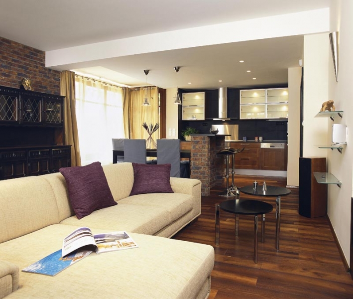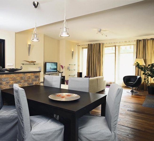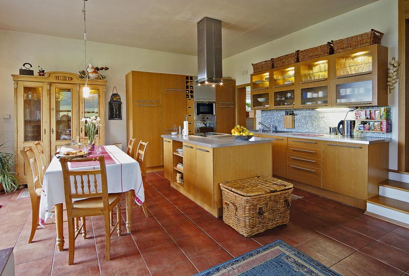 Provoz domácnosti je rozdělen na dva funkčně samostatné celky: z haly vede komunikační linie jednak jižním směrem do společné obytné části s pracovnou, kuchyní, jídelnou a sezením, jednak západním směrem do privátní zóny se třemi ložnicemi. Na východní straně vedle domu se nachází kryté automobilové stání a sklad. „Architekt dobře promyslel dispozici jak z technického, tak i z praktického hlediska. Například z předsíně projdeme s nákupem přes spíž přímo do kuchyně. Všechny místnosti mají optimální velikost, nechybí dostatek úložného prostoru, ale nejsme zatíženi nevyužitými či předimenzovanými plochami.“