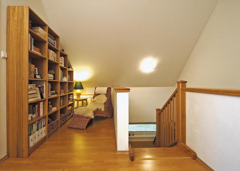 Když mladí manželé hledali v Praze prostornější bydlení pro rodinu se dvěma dětmi, zjistili, že cena čtyřpokojového bytu se pohybuje na úrovni ceny stavby středně velkého rodinného domu. Ve většině čtvrtí je navíc čekaly beznadějně plné školky a školy, problémy s dojížděním a podobně. Když poté náhodou objevili parcelu na klidném místě v Posázaví, s výhledem na protilehlý kopec korunovaný siluetou barokního kostela, k tomu pár kroků do školy a do školky, bylo rozhodnuto. A proč dřevostavba? „Máme rádi přírodní materiály a lákala nás i rychlá a čistá výstavba. Dům jsme postavili přes zimu za 4 měsíce, nebylo třeba nechat jej přemrznout jako zděnou stavbu,“ říká majitel.