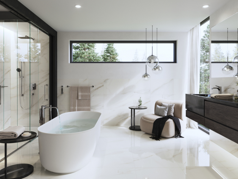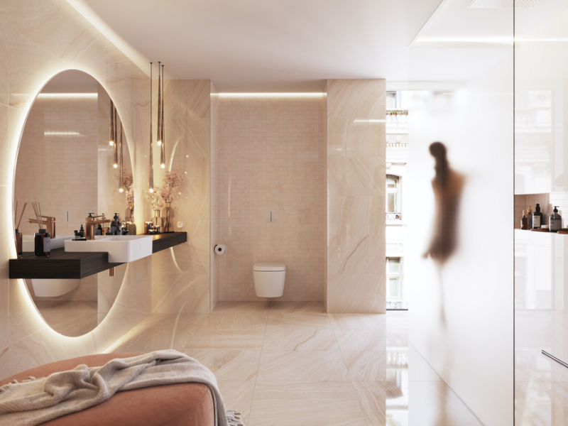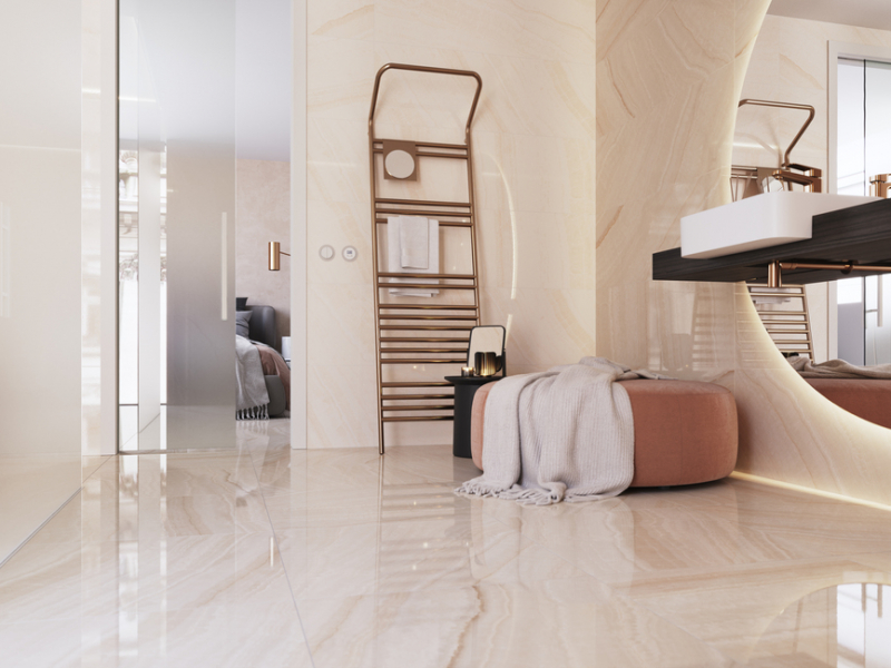 - rektifikované obkládačky v luxusním velkoformátovém provedení 40 x 120 a 30 x 60 cm v lesklém provedení onyxového mramoru