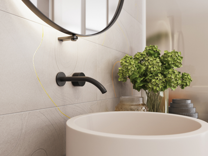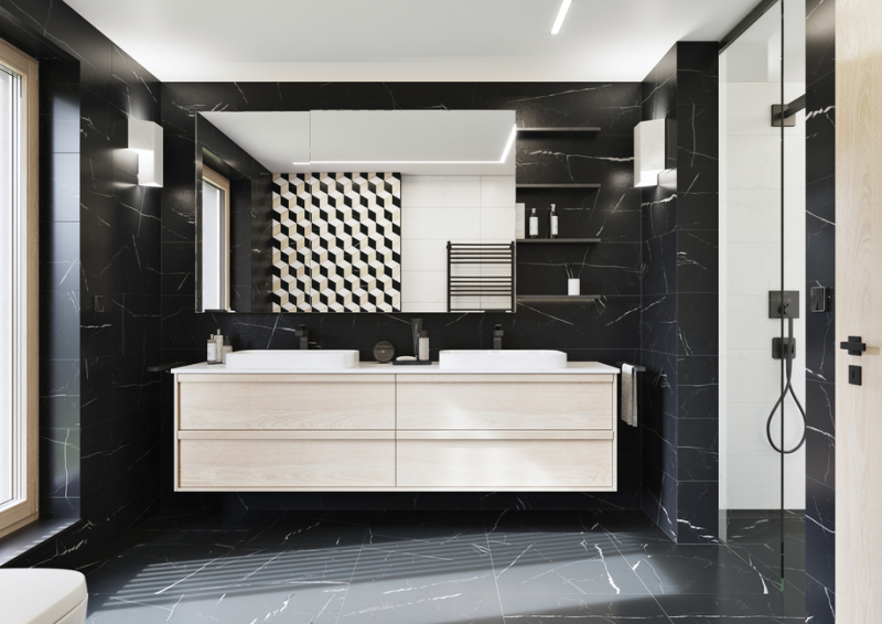 - kombinace s matnými nebo lesklými obkládačkami série Vein pro černobílé provedení koupelny