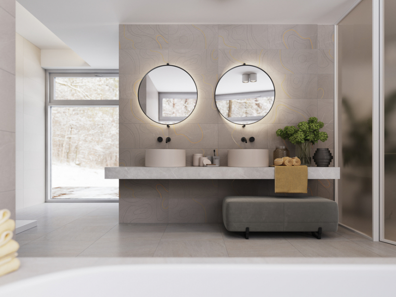- základ série tvoří lesklé a matné rektifikované obkládačky 30 x 60 cm a v luxusním velkoformátovém provedení 40 x 120 cm