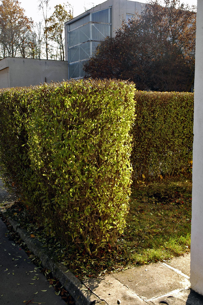 | Kromě stálezelených listů nabízí ty nejlepší vlastnosti starý dobrý český habr obecný (Carpinus betulus). Je neprůhledný i v zimě, protože staré listy zrezaví, ale na větvičkách vydrží až do jara a opadávají až těsně před rašením listů nových. Krásně se tvaruje, stříhá se jednou ročně (v červnu) nebo dvakrát (v únoru a červnu). Daří se mu na slunci i v polostínu, roste v půdách kyselých i zásaditých, spíše sušších, ale toleruje i vysokou spodní vodu. Hustou houštinu větví milují drobní zpěvní ptáci a s oblibou v něm hnízdí. |