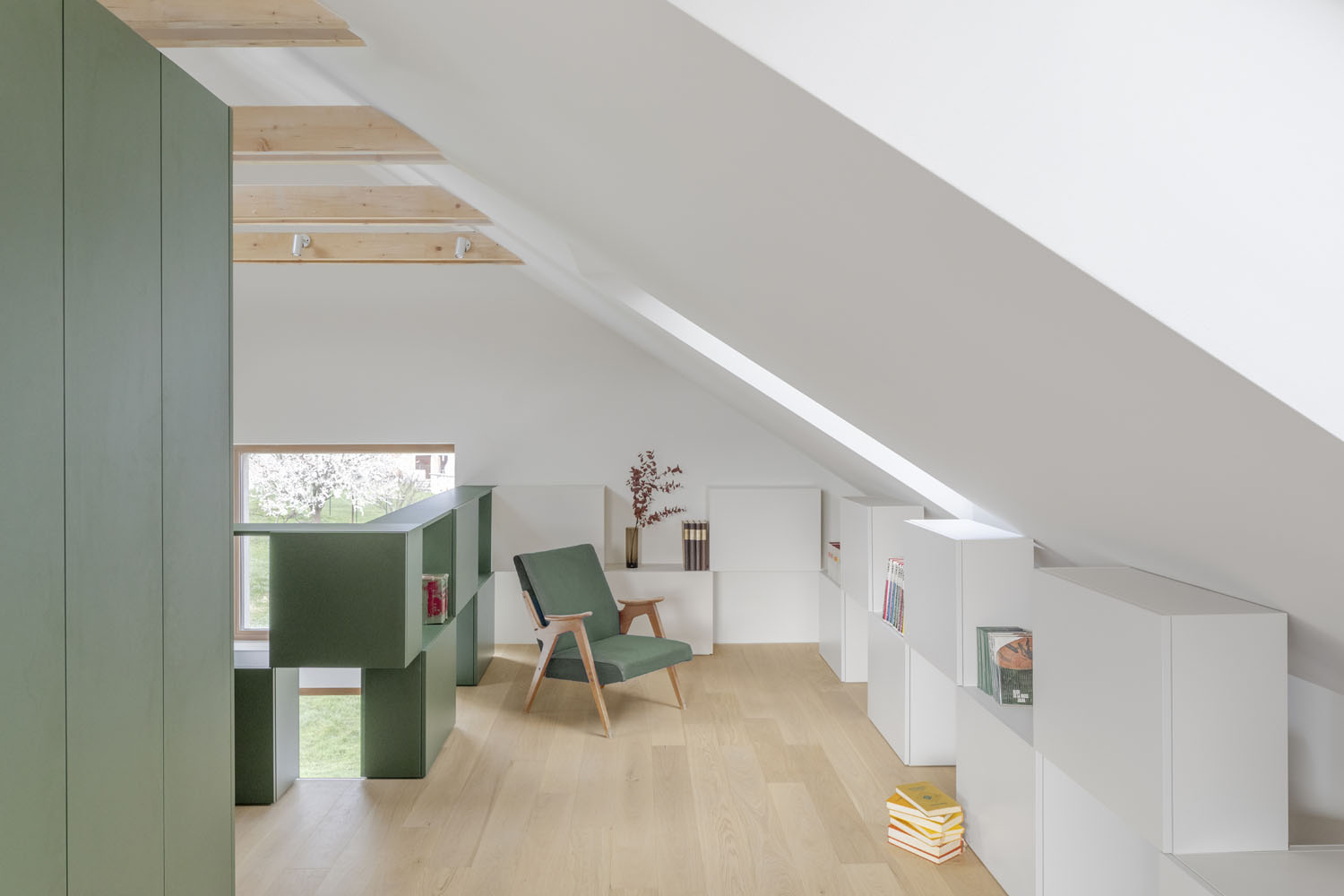 Výsledkem je sofistikované a multifunkční podkroví, které slouží jako soukromé útočiště i místo pro setkávání – dokonalá směs relaxace, nostalgie a moderního designu. Kombinace slunečního světla, promyšleného prostorového designu a personalizovaných prvků vytváří až požitkářskou atmosféru, díky čemuž je toto podkroví oblíbeným místem, které si rodina bude užívat po mnoho let.