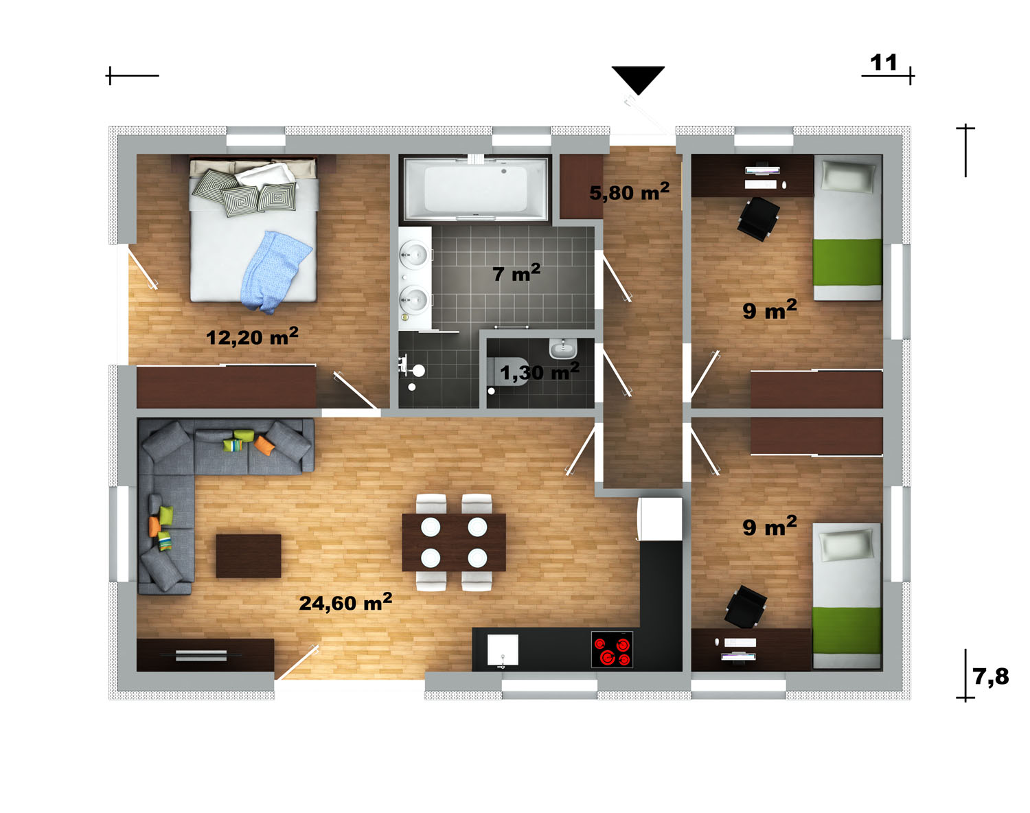 Bylo jim jasné, že stavba na klíč bude nejlepší volbou. Stavět dům svépomocí by bylo příliš časově náročné vzhledem k jejich pracovním závazkům. Neměli konkrétní představu, kam se obrátit, a tak začali hledat stavební společnosti na internetu, zejména podle zkušeností ostatních lidí. Náhodou našli kontakt na Ekonomické stavby a jejich nabídka je okamžitě zaujala. První setkání se zástupci ES proběhlo velmi pozitivně. Petra a Tomáš šli na schůzku už s konkrétní představou o domě, který si vybrali na stránkách Ekonomických staveb, a to dům Katka 12 B, což je bungalov s užitkovou plochou do 100 m2 a dispozicí 4 + kk. Tento dům se nachází ve střední zástavbě obce a má střední zahradu, kde se jejich dva synové a fenka Mia mohou volně pohybovat a hrát si.