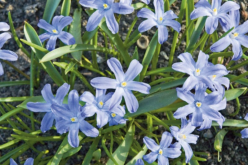 Drobečci i bohatýřiVelmi hezkou a naprosto nenáročnou cibulovinou do jarních trávníků je ladonička Luciliina (Chionodoxa luciliae). Pochází z pohoří turecké Anatolie. Drobné rostlinky jsou vysoké jen 10 až 15 cm, mají krásné hvězdičkovité květy, nejčastěji modré s bílým středem, někdy bílé nebo růžové. Rozkvétají velmi brzy v březnu – často společně s ladoňkami a krokusy. Ladonička je velmi přizpůsobivá a spolehlivě kvete v polostínu i na slunci. Daří se jí v lehčí půdě bohaté na živiny. Často se množí samovýsevem, vytváří i velké množství dceřinných cibulek a v trávníku se časem sama namnoží do velkých ploch. Hodí se i k přirychlování v miskách. Protipólem jemných drobečků jsou mohutné, 80 cm až metr vysoké nepřehlédnutelné stvoly řebčíku královského (Fritillaria imperialis). Ačkoliv působí velmi exoticky, nejčastěji ho můžete vidět ve venkovských zahradách. Pochází z Íránu, Afghánistánu a západního Himálaje a do Evropy byl dovezen již v roce 1574. Pěstuje se nejen původní forma s cihlově červenými květy, ale i žlutokvěté odrůdy. Kvete v dubnu. |