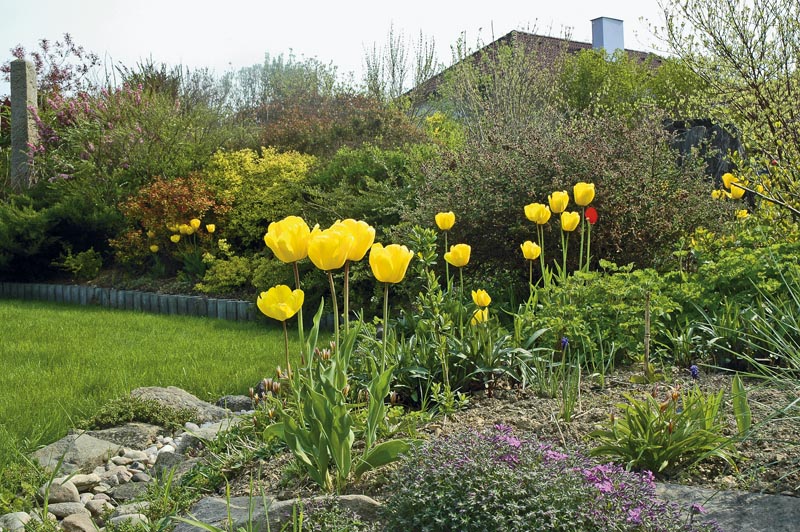 Králové zahrad, tulipányPánem jarních zahrad je a zůstane tulipán. Planých druhů byla popsána asi stovka, rostou od jihovýchodu Evropy až po Malou a Střední Asii. V přírodě jsou to obyvatelé stepí a hor (rostou až do nadmořeské výšky 3 500 m), najdeme je na extrémních stanovištích s tvrdými zimními mrazy a horkými, suchými léty. Pěstují se jak původní, botanické druhy, tak i tisíce hybridů. Hodí se do záhonů, do trávníků, některé nízké druhy a odrůdy skvěle působí ve skalkách. Speciální kultivary jsou vyšlechtěné k rychlení do bytů, jiné k řezu. K úspěšnému pěstování tulipánů je nutné pochopit jejich životní cyklus. Tulipánová cibule, složená z několika suknic, je jednoletá – uprostřed má růstový vrchol, z něhož vyrůstá rostlina, a u jeho základu vzniká nová cibule, zatímco stará se spotřebovává. V úžlabí ostatních suknic se vytvářejí dceřinné cibulky. Při pěstování šlechtěných odrůd (i některých botanických druhů) je důležité cibule po odkvětu vyndat ze země a na podzim je opět vysadit. Pokud zůstane cibule tulipánu mnoho let na svém místě, neustále se bude zvyšovat počet malých dceřinných cibulek, které však nepokvetou a budou mít jen jeden list. Není to degenerace, jak se dříve vysvětlovalo, ale neustálé zeslabování rostliny dělením na menší cibule a vyčerpáváním živin z půdy. |