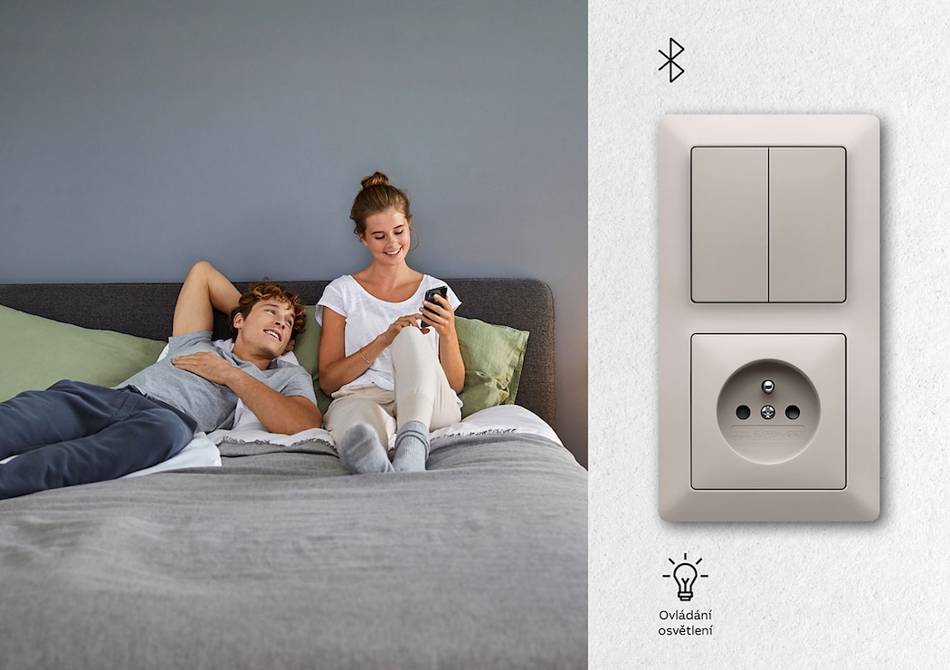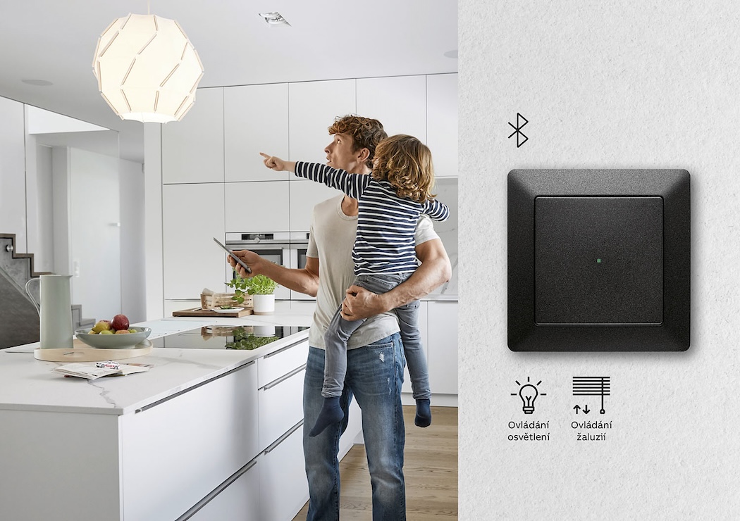 • Chytrý vypínač umí například levou půlkou ovládat osvětlení a pravou žaluzie.